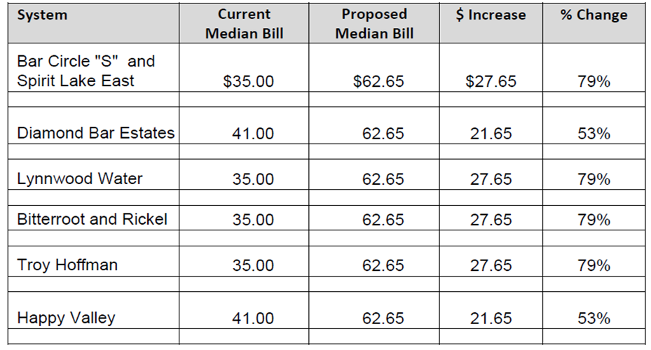 If the proposed rate increases are approved, the table below shows the current and proposed typical monthly bill for customers with median usage of 7,000 gallons.